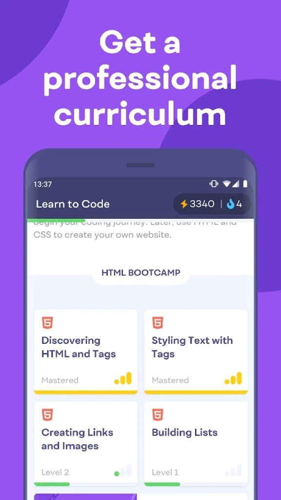 Mimo MOD APK is a code compiler, an app that teaches programming popular in the education category on app stores. It has nearly 10 million downloads and more than 200,000 positive reviews. This shows how useful and appreciated Mimo is. And if you’re fumbling about learning to code, download Mimo to learn more quickly, get deeper into the aspects of computer science!